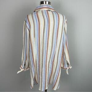 Soft Surroundings Multi Color Stripe Gauzy Button Down NWOT Top XL