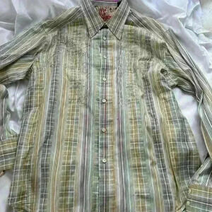 Robert Graham Mens Shirt Large Multicolored Stripes Embroidered 100% Cotton