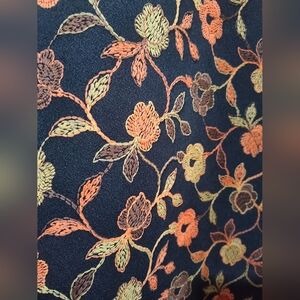 Vintage Fabric Black With Orange & Yellow Flowers Embroidered 64" X 42" Retro