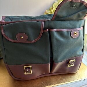 Signature Hunter Green canvas with dark brown leather and brass hardware.