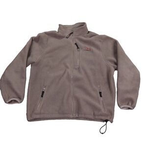 VTG ll Bean Fleece Jacket Mens Large Taupe Sunrise Over Katahdin Logo USA Made