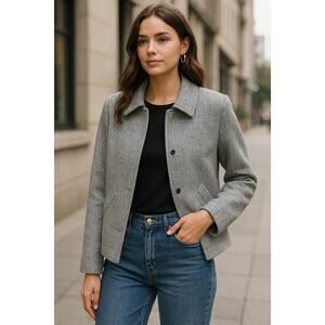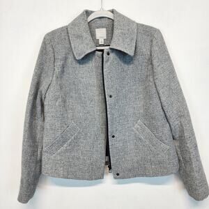 Halogen Full Zip Crosshatch Jacket Size M Gray Long Sleeve Minimalist Classic