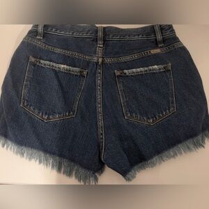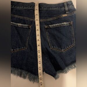 KanCan Signature Shorts Blue Distressed Frayed Hem High Rise Pockets Women’s Size Medium with additional approximate dimensions in photos