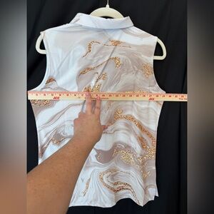 Legogolfs White and Tan Sleeveless Collared Golf Sports Shirt Women’s Large New