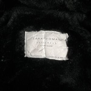 ZARA WOMAN Faux Fur Lined Parka Women’s Sz Medium Black Hooded Full Zip Pockets