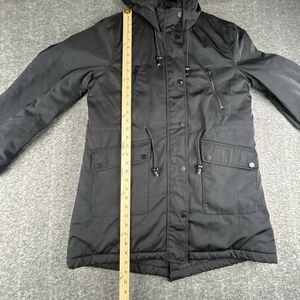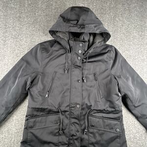 ZARA WOMAN Faux Fur Lined Parka Womens Sz Medium Black Hooded Full Zip Pockets