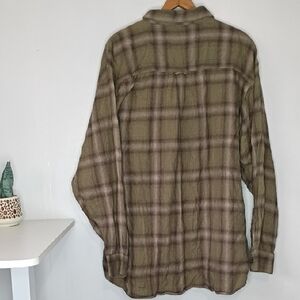 North River Outfitters Men’s 2XL Green & Brown Plaid Flannel Shirt Cotton Rayon