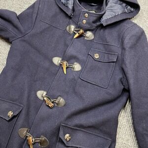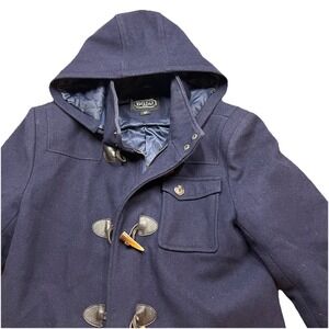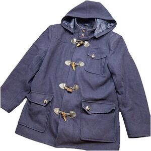 BGSD Men's Duffle Wool Blend Toggle Hooded Quilted Medium Blue Dock Nautical EUC