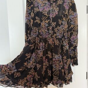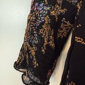 Free People - Elegant black dress with a vibrant floral pattern. Perfect for any occasion. No snags/flaws