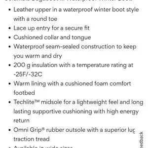 Tackle winter with Columbia's sturdy boots. Waterproof and insulated. Perfect for snow and cold.