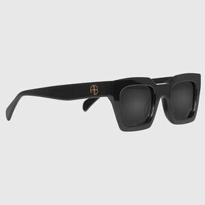 The best-selling Indio Sunglasses feature oversized square frames accented with a gold-tone ANINE BING monogram at each temple. This pair is made from sleek black acetate fixed with dark grey lenses. Polarized with UV400 protection.
