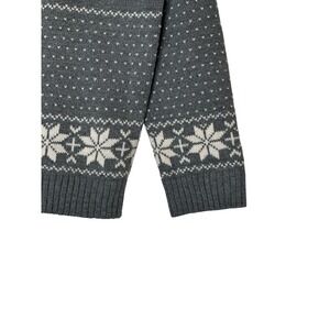 The POL Sweater Top is a cozy and festive addition to any woman's winter wardrobe. This XL gray pullover features a cute reindeer print, perfect for celebrating the holiday season. Made of a cotton and acrylic knit fabric, this sweater is ideal for casual occasions in the winter, fall, or spring. The crew neck, long sleeves, and straight hem give it a classic fit, while the stretch feature adds comfort and flexibility. Hand wash only to maintain its quality, this sweater from POL is sure to keep you warm and stylish during the cold weather.