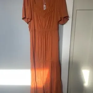 Beautiful Nutmeg maxi dress by Baltic Born. Flattering silhouette with fluttering short sleeves. Ideal for versatile styling. Sizing did not fit me and was a final sale so my loss is your gain!