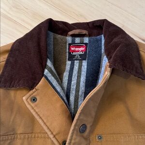 Wrangler Barn Chore Coat Jacket-Blanket Lining in tan canvas-Workwear-S-Read