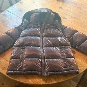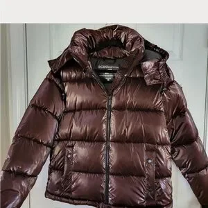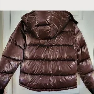 Stylish Maroon/brown metallic/shiny puffer jacket with eco-friendly fill. Perfect for warmth and comfort.