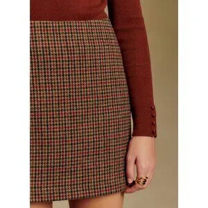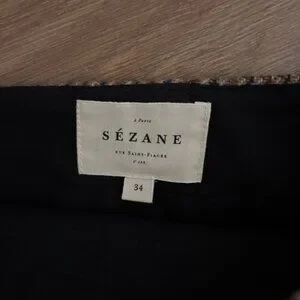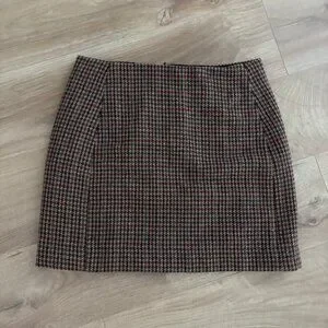 Chic mini skirt by Sezane. Features a stylish brown and tan pattern. Wool material. Perfect for any occasion.