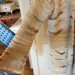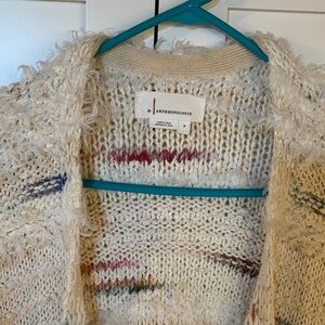 anthropologie Margo Rainbow Sweater Cardigan White Multi Medium Soft Knit