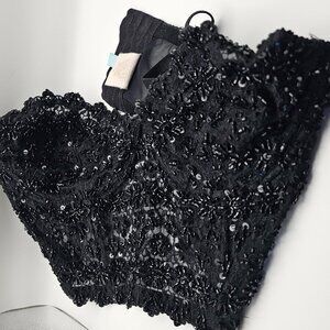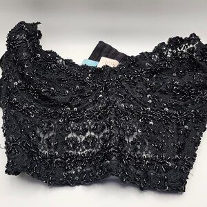 Marciano Black Lace Beaded Bra/Crop Top – Glam Eveningwear, Sweetheart Neckline