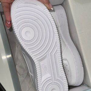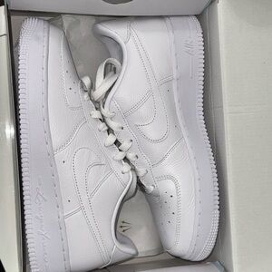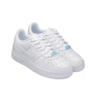 Sleek all-white Nike sneakers. Premium leather finish. Ideal for everyday wear.