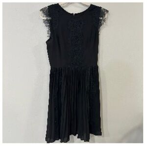 BANANA REPUBLIC Black Sleeveless Lace Pleats Lined Dress SZ 2 LBD Feminine EUC