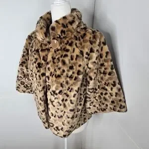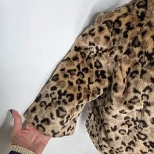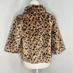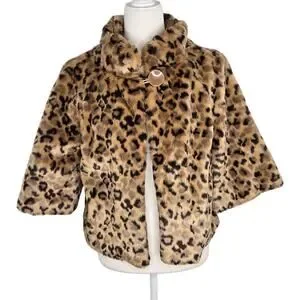 Relativity EUC crop leopard faux fur coat jacket 10 petite brown tan
