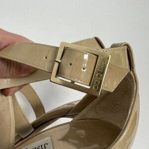 Jimmy Choo Lottie Crisscross Nude Beige Patent Leather Sandal Pump 38.5