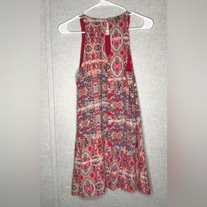 Lulus Red Geometric Print Shift Mini Dress Size XS Very goodo condition Fully lined Keyhole back neck button closure 100% Rayon Extra button on material tag Flat lay pit to pit 16” Length from Shoulder 32”