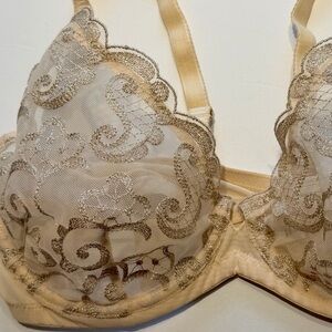 Soma | 38C Limited Edition Night Shimmer Unlined Plunge Metallic Gold Lace Bra NWOT . Not worn . New without tags. Such an elegant , luxurious beautiful bra ! Cream / gold .