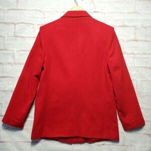 VTG Dumas 100% Pure Wool Blazer Womens Medium Red Classic Holiday 80s Jacket Coat Lined Single Button USA