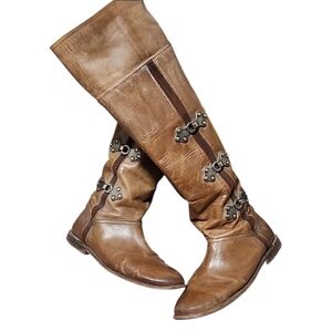 FRYE VINTAGE Chesnut Leather Tall Riding Boots 6.5 OTK Goth Buckles Renaissance