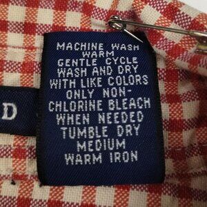 Offers a long sleeve button up with a side pocket on the left side of the best and has a red/white check design all around. Made of 100% cotton material. Excellent condition: no signs of pulling, tears, or stains. This item has been cleaned, sanitized and deodorized.