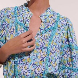 NWT Poupette St Barth Amanda turquoise graffiti mini dress size S