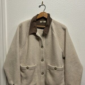 Madewell Corduroy-Trimmed (Re)sourced Sherpa Terry Chore Coat Medium Brown Beige