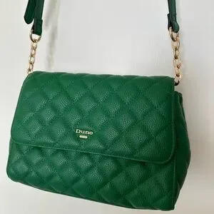 Discover elegance with the Dune Green Quilted Leather Shoulder Bag. This stylish accessory features a luxurious quilted design, perfect for enhancing any outfit. The vibrant green color adds a touch of sophistication to your look. In great condition. Very clean. Used once. Perfect condition.