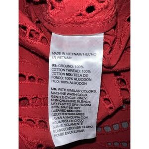 Chicos Rust Eyelet Chevron Button Up Shirt Top Women's Size M (1) Poplin Cutwork