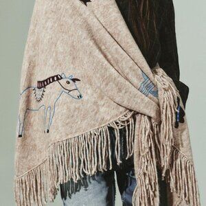 ZARA EMBROIDERED FRINGED CAPE SHAWL