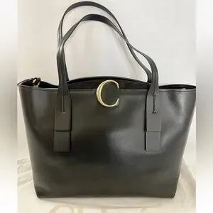DESCRIPTION: Beautiful leather tote by Chloe with gold C accent, top carry handle, and zip closure.