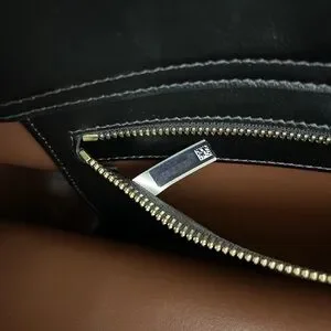 Brown and black leather interior, one interior zipped pocket. Comes with dust bag and tags.
