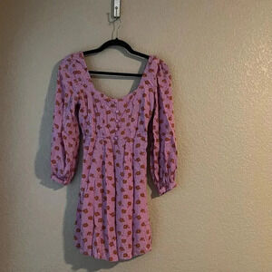 Billabong Heartland Dress Babydoll Floral Purple Small Beach Mini Dress