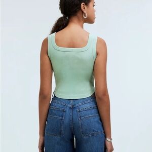 NWT. Flexible, breathable cropped tank. 94% cotton, 6% elastane. Contains hidden snap to hide bra straps.