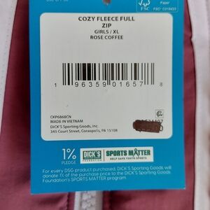 DSG Girls XL Rosie Coffee Zip-Up Thick Fleece sweatshirt Brand New With Tags. Stay warm and comfortable in this soft DSG zip-up fleece. Perfect for everyday wear and keeping warm on chilly days. Designed with elastic wrists and hem to keep warmth in, a full front zip closure for easy layering, and cozy deep hand pockets for added comfort. The plush fleece fabric provides excellent insulation, warmth, comfort, and durability, making it ideal for outdoor activities, school, athletic, athlesure, cheerleading, sports, layering, streetwear, spring, fall, winter, play dates, the park, or everday casual wear. DSG is an excellent high quality brand owned by Dicks Sporting Goods. This NWT Girls size XL thick fleece jacket would make a nice gift. Smoke-free and pet-free home.