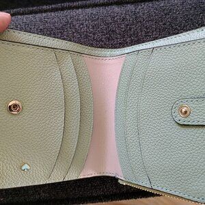 BNWOT KATE SPADE SMALL BIFOLD WALLET GREEN LEATHER 6 INSIDE SLOTS & CASH SLEEVE