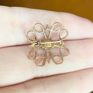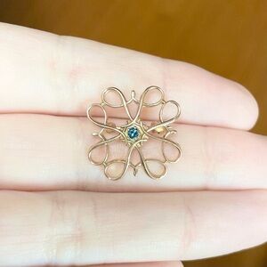 10k vintage Avon Lab Created Sapphire September blue birthday yellow gold brooch