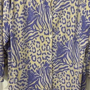 Trendy Sweater with a bold purple and cream animal print. Ideal for layering.