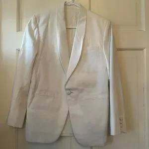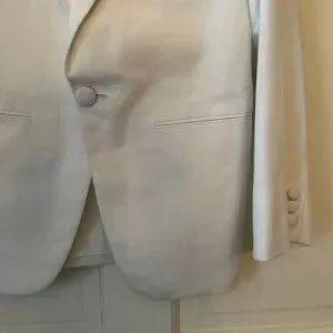 Elevate your style with this sophisticated white blazer. Perfect for formal occasions and adding a touch of elegance to any outfit. Measures 18” UA to UA, 28” length.