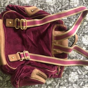 Juicy Couture Plum Velour and Brown Leather Backpack