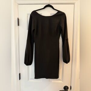 In the Dress the Population Mackenzie Long Sleeve Minidress, the drama is real and beautifully wearable. The sleek black fabric captures the light just enough to keep things interesting while maintaining an understated elegance. The magic happens with a dipped, twisted back that exudes a touch of allure—an unexpected twist that balances well with the confident bateau neckline. The voluminous sleeves add a modern flair, echoing silhouettes seen on the latest runways, yet remain timeless.