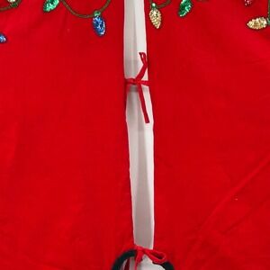 Vintage Christmas Tree Skirt Red Velvet Sequin Lights Tree Ornament Star 56 "
