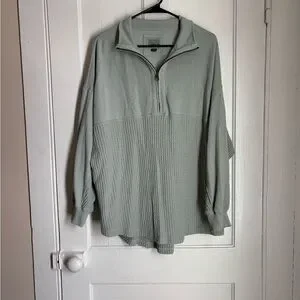 Cozy quarter-zip sweatshirt. Features a textured lower half. Perfect for casual wear with leggings! In great condition, from a smoke free and pet friendly home. Wrapped & shipped out next day business day! ❤️
