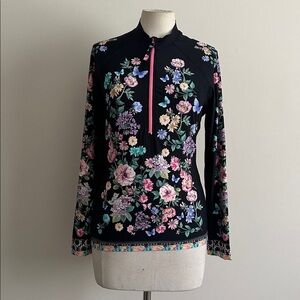 Johnny Was Floral Butterfly SURF SHIRT Swim Zip Up Golf Shirt sz Large NWT